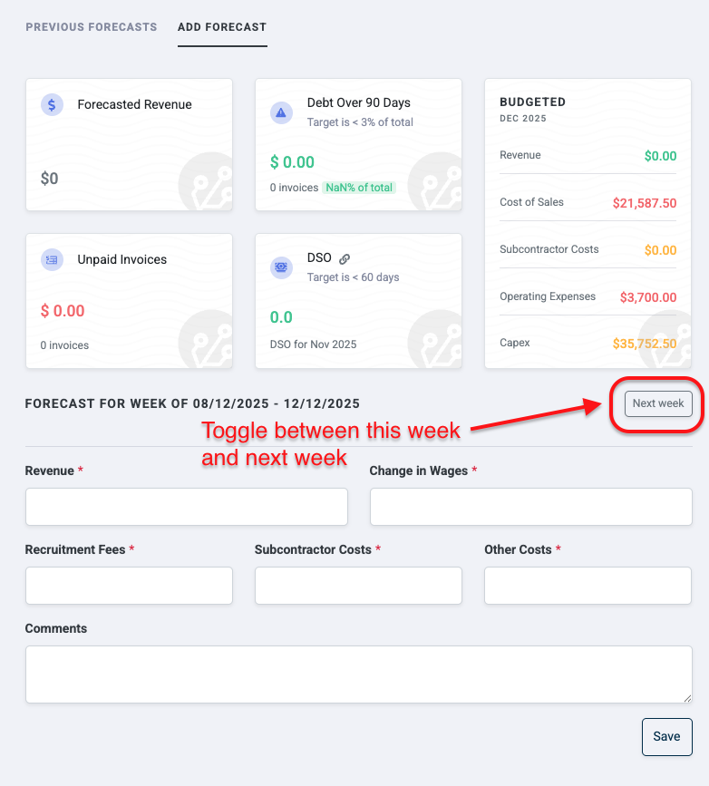 You can now enter weekly forecasts for next week ahead of time.