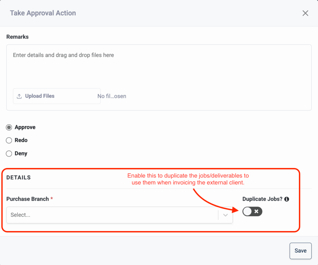 From there, they’ll be able to invoice the external client using those duplicated deliverables.