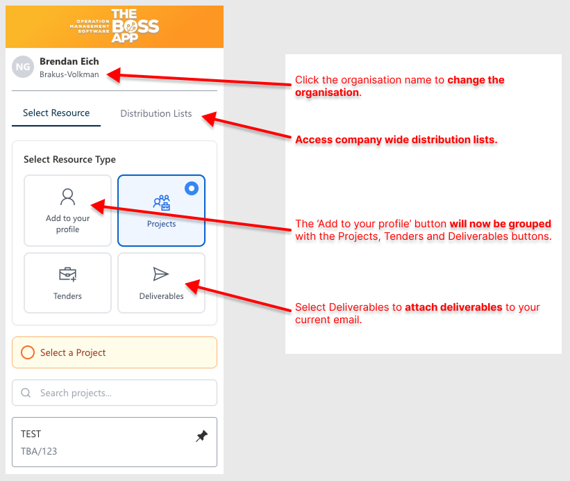 The Outlook add-in for theBOSSapp will be receiving a visual refresh in the next few days. The update reorganises some buttons and labels to make the add-in easier to navigate but no functionality has changed.