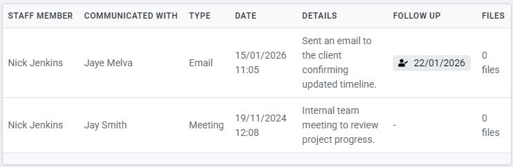 Communication Log